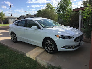 Today, a 2018 Ford Fusion Platinum sits in my driveway. The car boasts a power tilt/telescoping steering column with memory, dual integrated bright exhaust, premium leather-wrapped and stitched instrument panel and console rails, and myriad other extras I couldn’t possibly explain. The overall effect is…well…Wow!