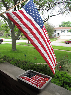 While I don’t have flag plates, napkins or—God forbid—a star-spangled bikini, I love bringing out my once-a-year crafty side to make an American Flag Cake for a cool patriotic treat.