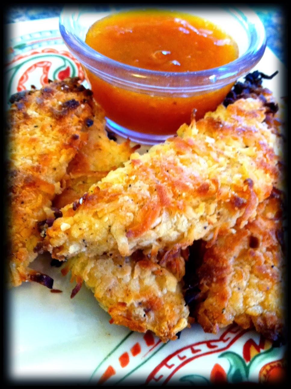 Prepare three separate bowls for breading your chicken: Bowl 1, combine flour and salt. Bowl 2, whisk eggs and milk together. Bowl 3, mix breadcrumbs and coconut together.