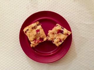 Add cranberries and nuts. (I use the mixer for about a minute just to incorporate well. This also breaks a few of the berries apart & lends a nice touch to the finished product)