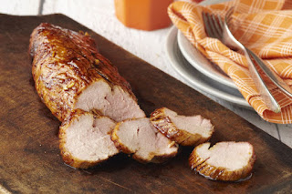 Mix all ingredients except meat in a small bowl. Lay meat in a shallow dish (we put the pork in a sealed plastic bag). Pour the marinade over the meat and then turn to evenly coat the tenderloin.