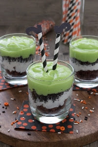 Dye the vanilla Snack Pack pudding cups green. This can be done in each individual pudding container or transfer all of the pudding to a bowl and then add the green food coloring until you get your desired color. Set aside.