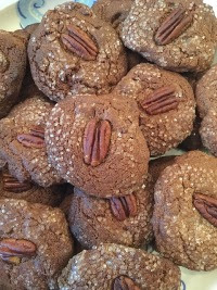 Lift the cookie and place it sugar-side up on the baking sheet. Press one of the pecan halves into the center. Repeat for the remaining cookies.
