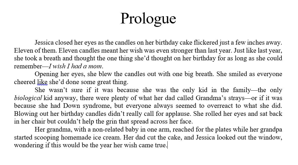 There is nothing Jessica wants more than to be like everyone else, but between her Down syndrome and her colorful family, “average” isn’t part of her vocabulary. This year when she blows out eleven candles on her homemade vegan cake she makes the same wish she’s made for as many birthdays as she can remember: she wants a mother.