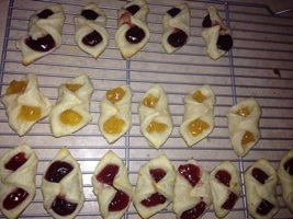 Blend all ingredients except filing in a medium-sized bowl. The trick to making tender kolackys is not to overwork the dough. If you do the pastry will be tough.