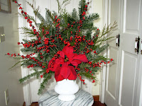 It looks easy, but the greenery for bouquets is more complicated than you might think. I’m fortunate because there is a veritable forest in my front and back yards. I deliberately refrain from trimming the evergreen shrubs out front until the holidays. That gives me a very fresh start to my bouquet which is difficult to match with store bought greenery. If you have any type shrub in your yard it will work. If not then you are forced to purchase them. I strongly recommend you visit your local nursery for the foliage you want.
