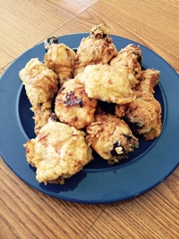 Drain and pat chicken dry. Place pieces one at a time in bag and gently shake to thoroughly coat them. Lay chicken on a plate as you coat the remaining pieces. Set chicken in fridge for at least 20 minutes to set the coating.