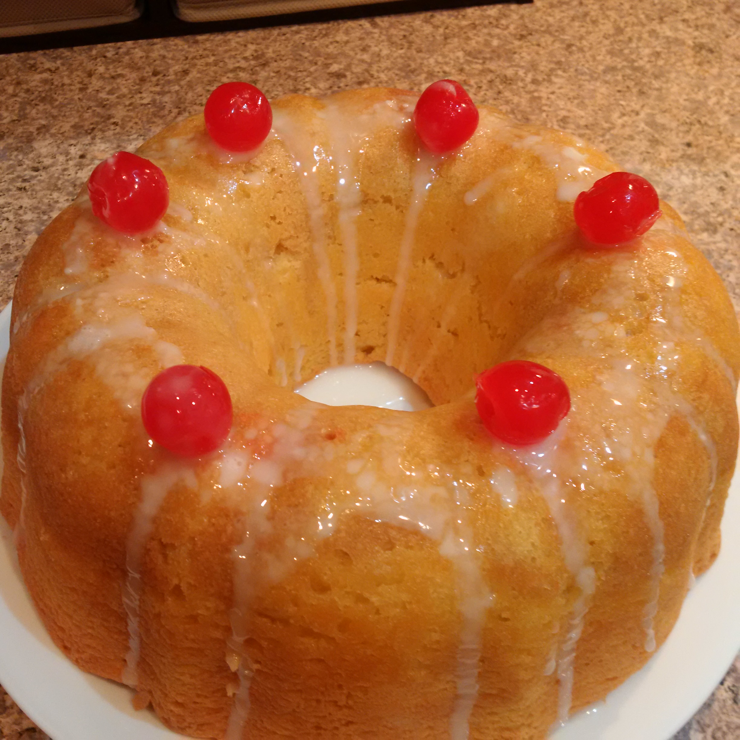 - Chopped maraschino cherries or chopped candied fruit for decorating the cake. You can add the chopped candied fruits to the baking pan before you add the batter, scattering them evenly around the pan, or you can reserve them and scatter them over the top of the baked cake adhering them to the cake with a bit of confectioner sugar glaze.