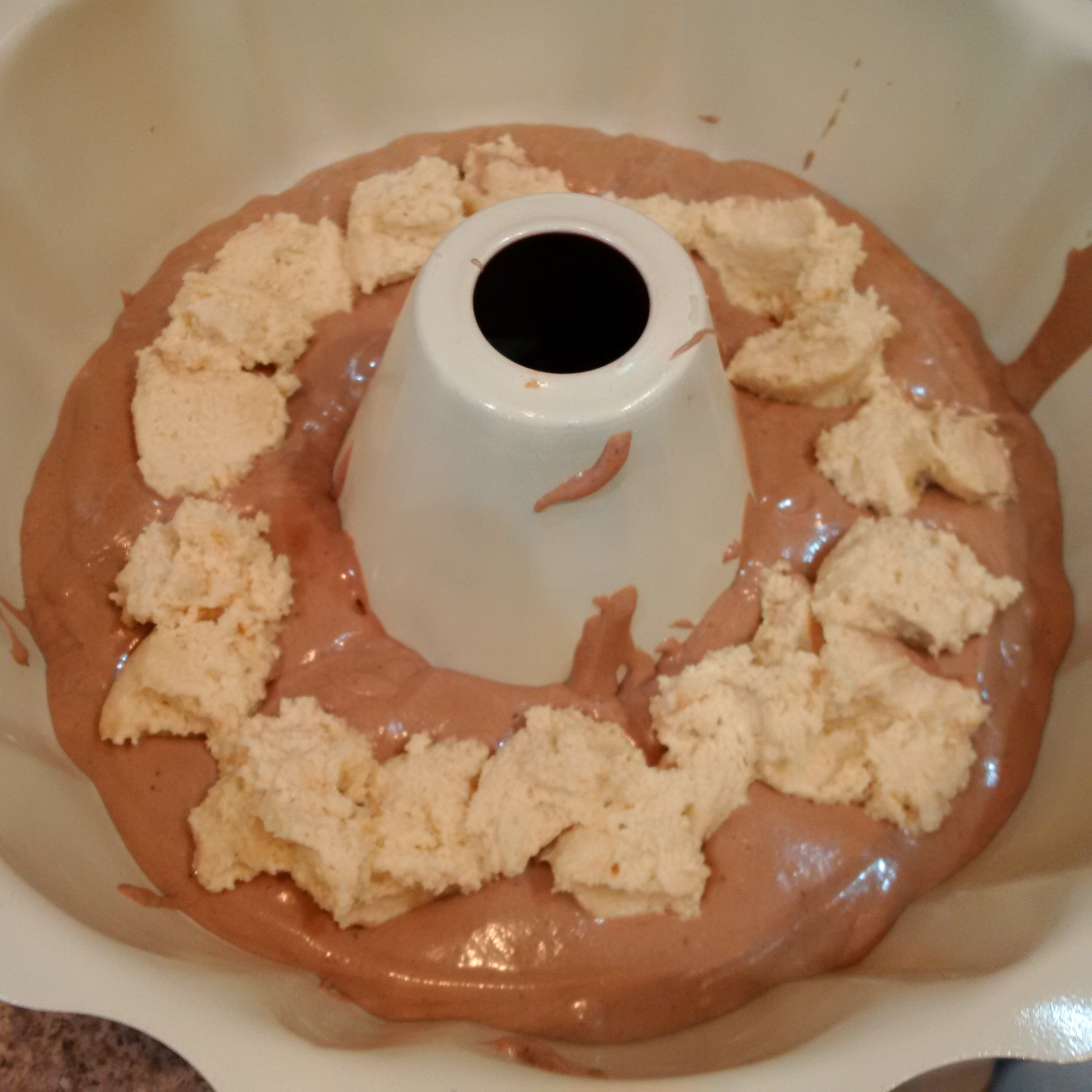In a lightly buttered, easy-release Bundt pan, gently pour 2 cups of batter into cake pan, smoothing out until batter is level if necessary.