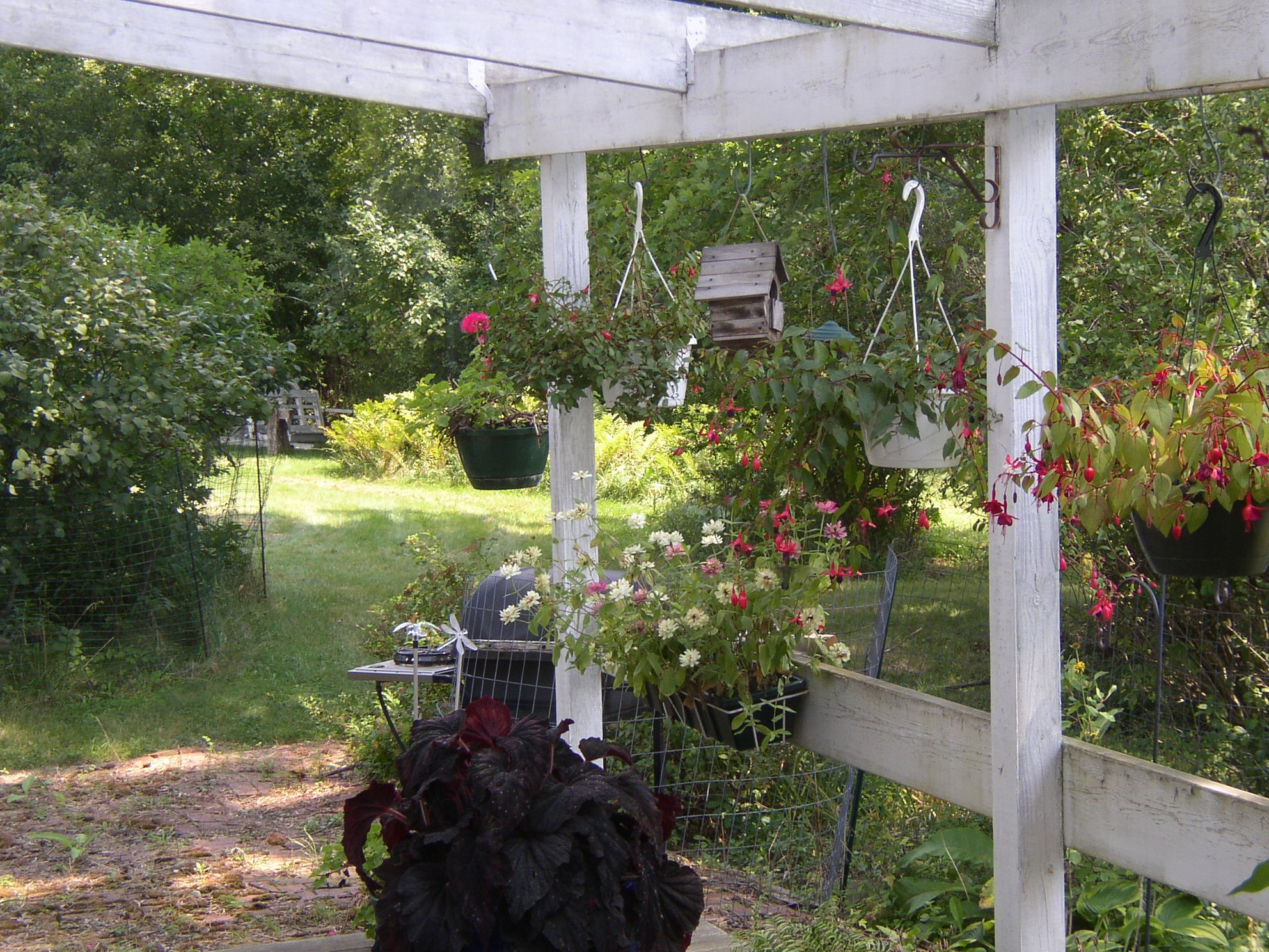 I’m pleased I had the foresight to plan ahead. In the summer, we enjoy total privacy while lounging in gentle summer breezes directly off the kitchen. Originally, we thought to put a roof over it, but once we sat staring up through the foliage of an ancient maple, we allowed nature to coax us to leave it be.