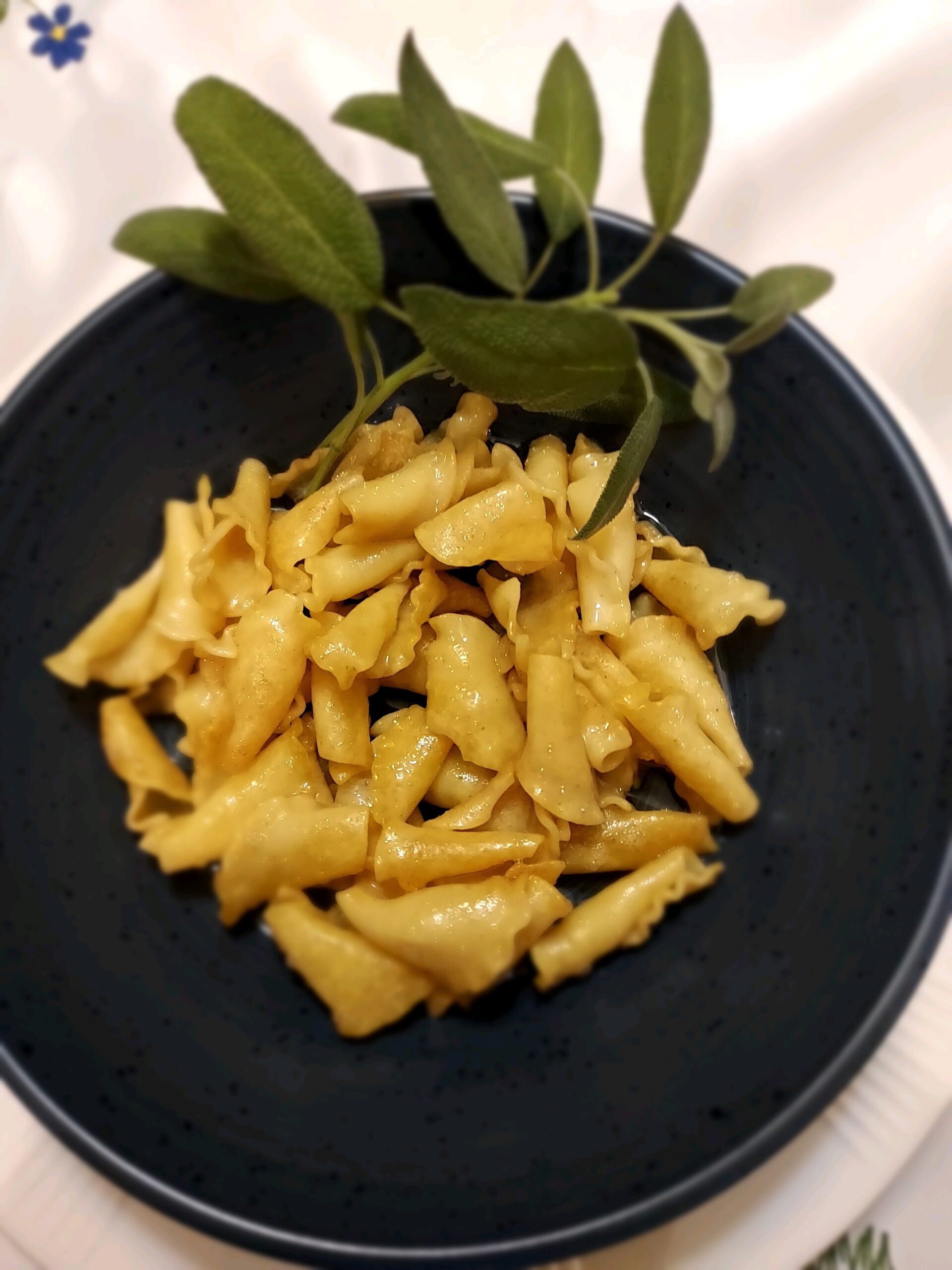 Add sage. Allow butter to brown. Watch carefully and stir often as once this starts to brown it changes quickly. Cook until butter reaches a medium caramel color. Remove sage leaves and discard.